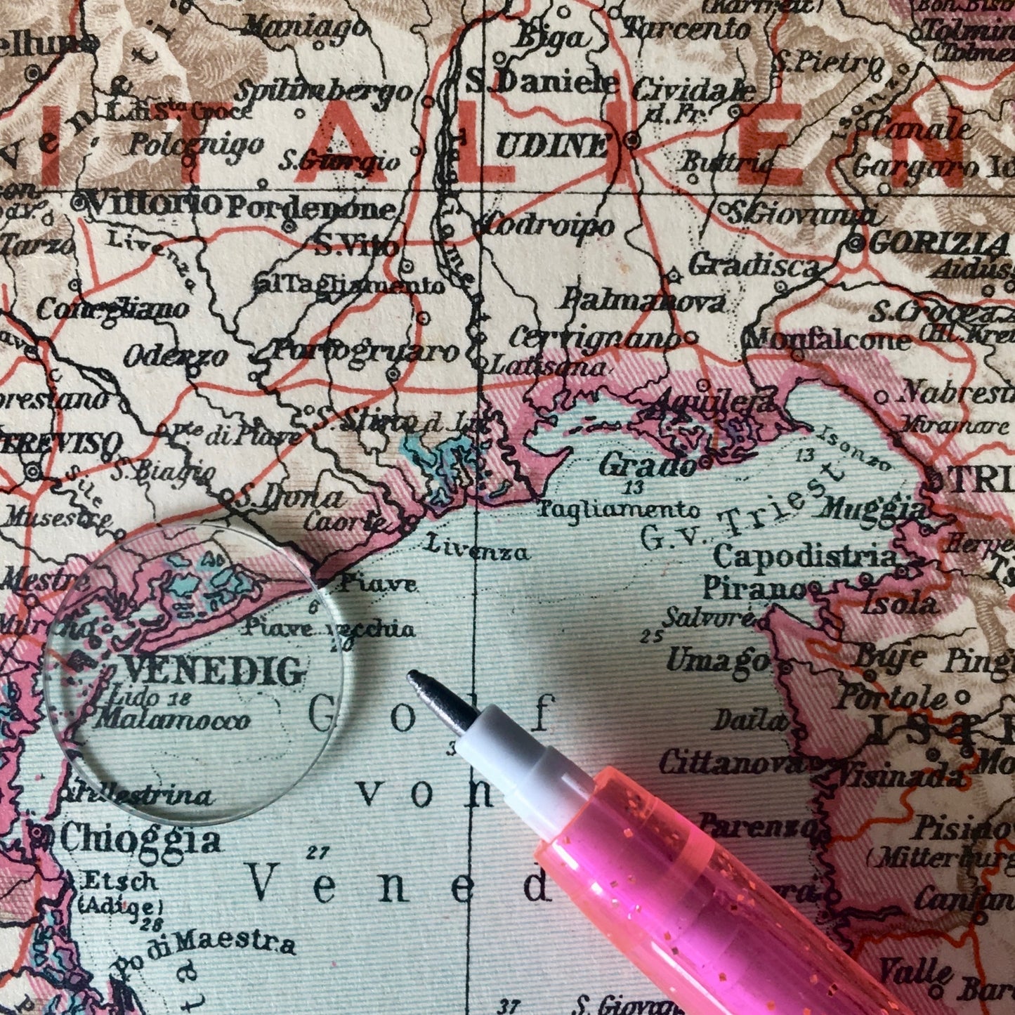 Die Orte und Kartenausschnitte auf den Fotos dienen zur Anregung und als Beispiel zur Veranschaulichung. Tatsächlich verwende ich verschiedenes antiquarisches Kartenmaterial aus unterschiedlichen Jahrgängen. Der Ausschnitt aus der Landkarte für Deine Medaillonkette wird sicherlich von den Fotos abweichen, selbst wenn Du denselben Ort wie auf einem Foto auswählen solltest.